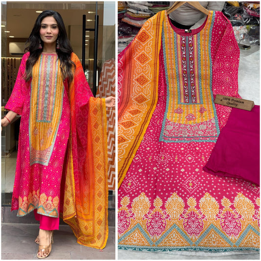 Pure Cotton (60-60) V Neck Embroidery with Printed Dupatta 3 pcs Suit
