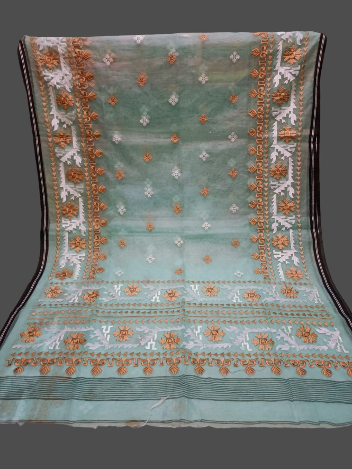 This Maslin Parsi Work saree is expertly crafted with intricate designs that showcase the rich heritage of Parsi culture. Made of luxurious fabric, it offers comfort and elegance for any occasion. Add a touch of tradition and sophistication to your wardrobe with this timeless saree.