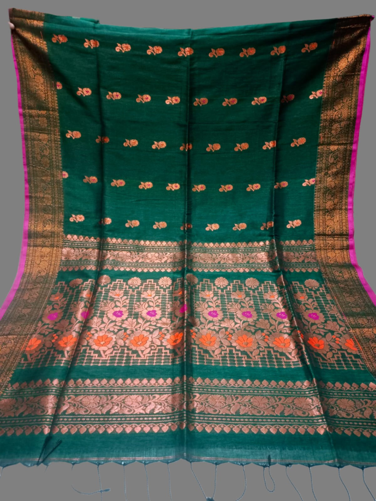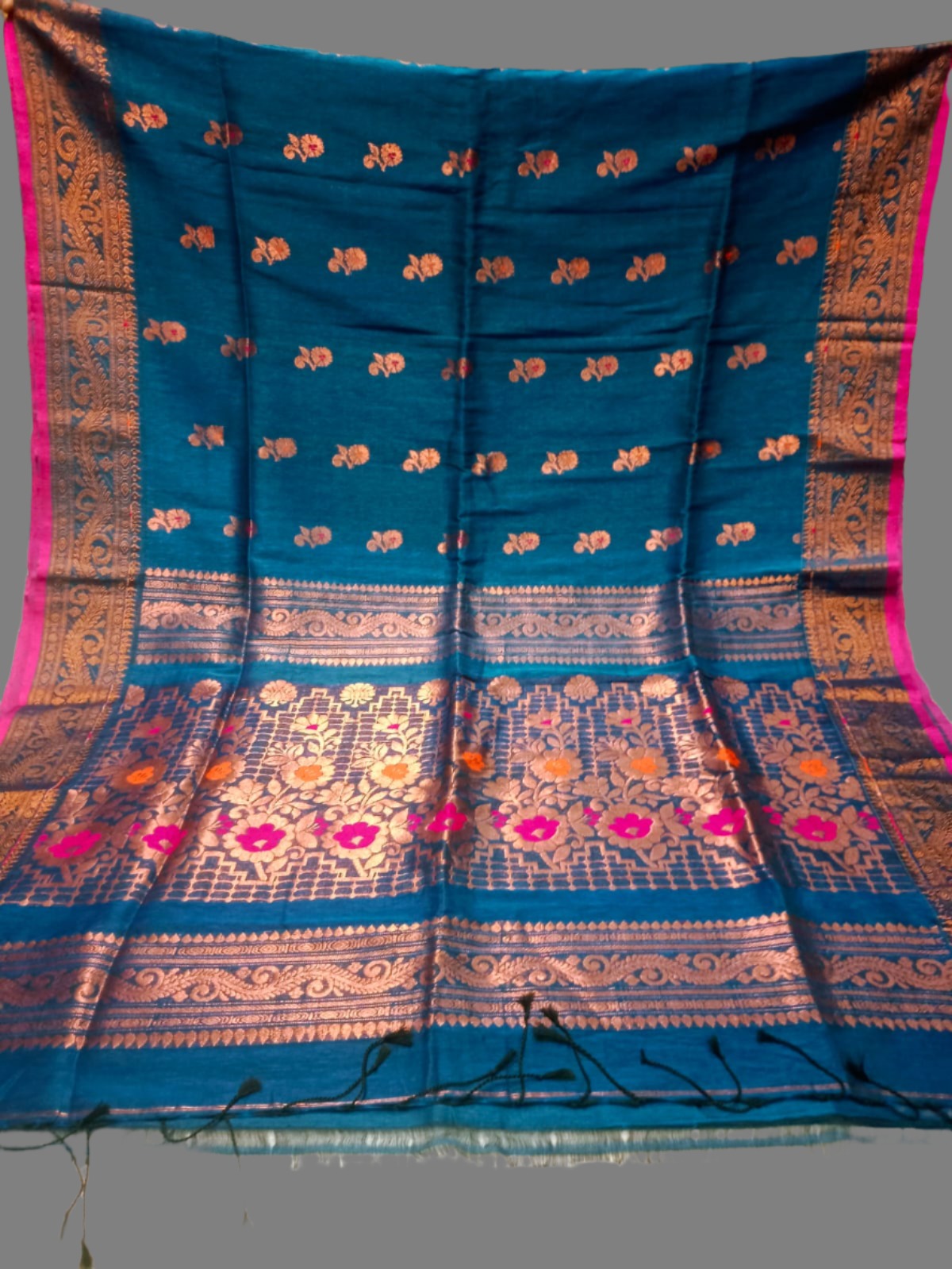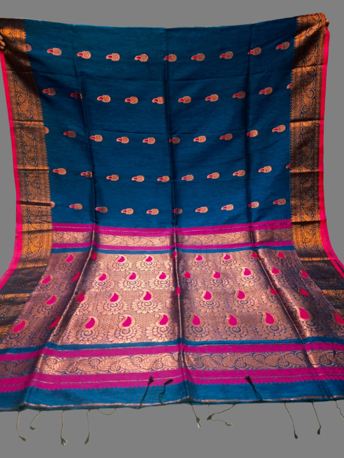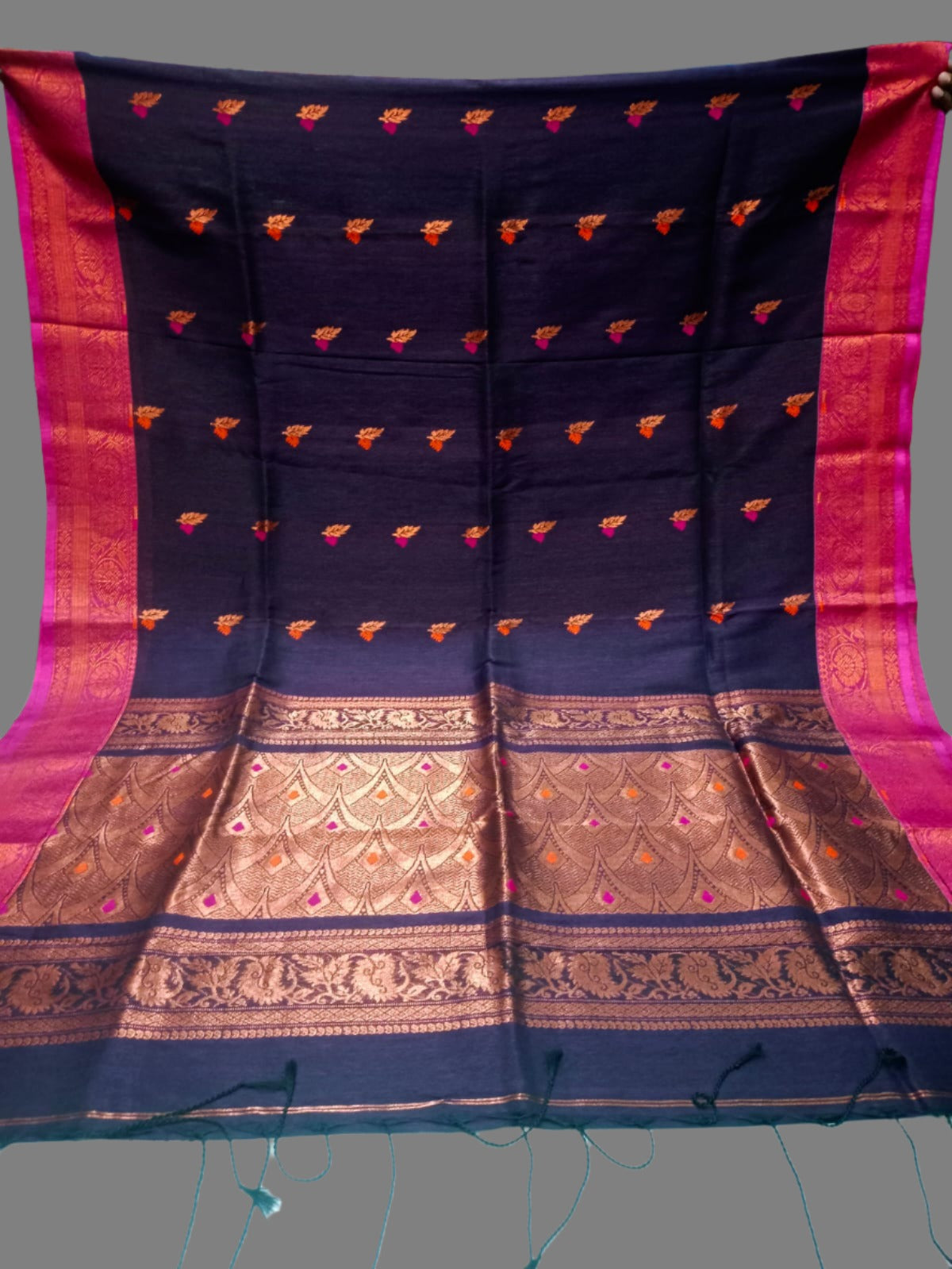This organic Linen saree is a must-have for eco-conscious fashion lovers. Made from high-quality, organic materials, it not only looks great, but also benefits the environment and local communities. Elevate your wardrobe with this sustainable and stylish choice.