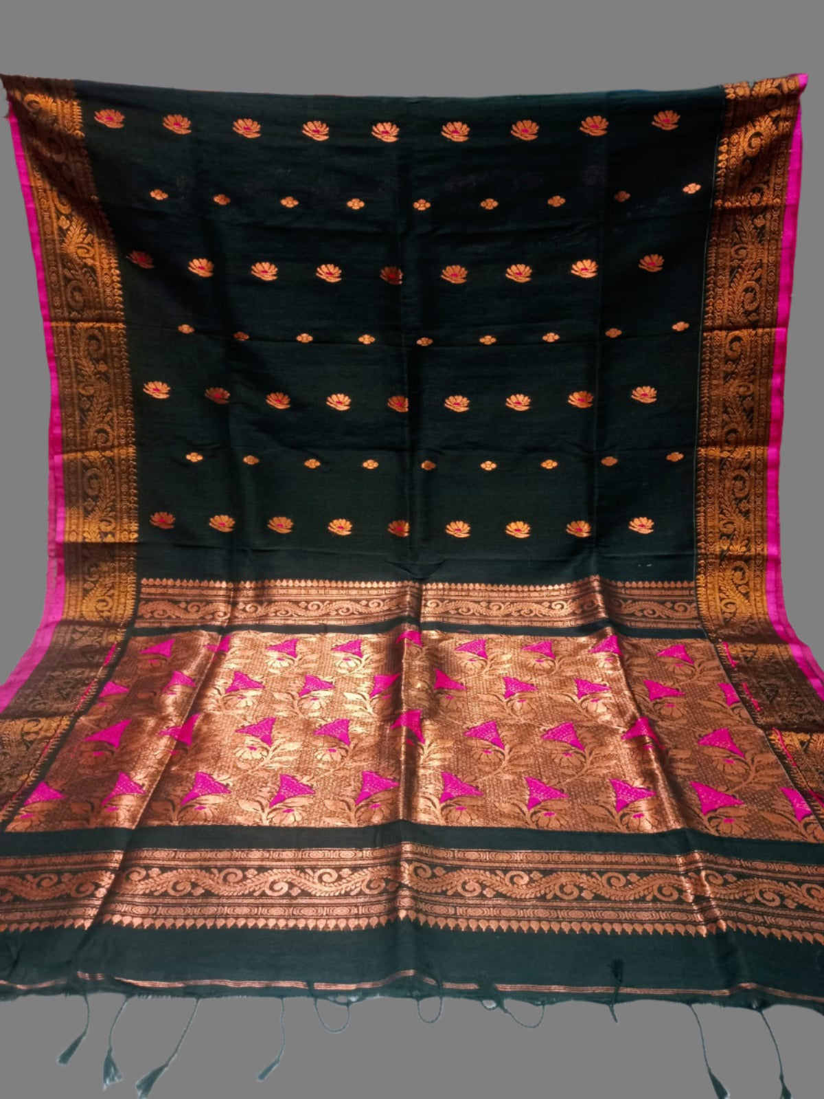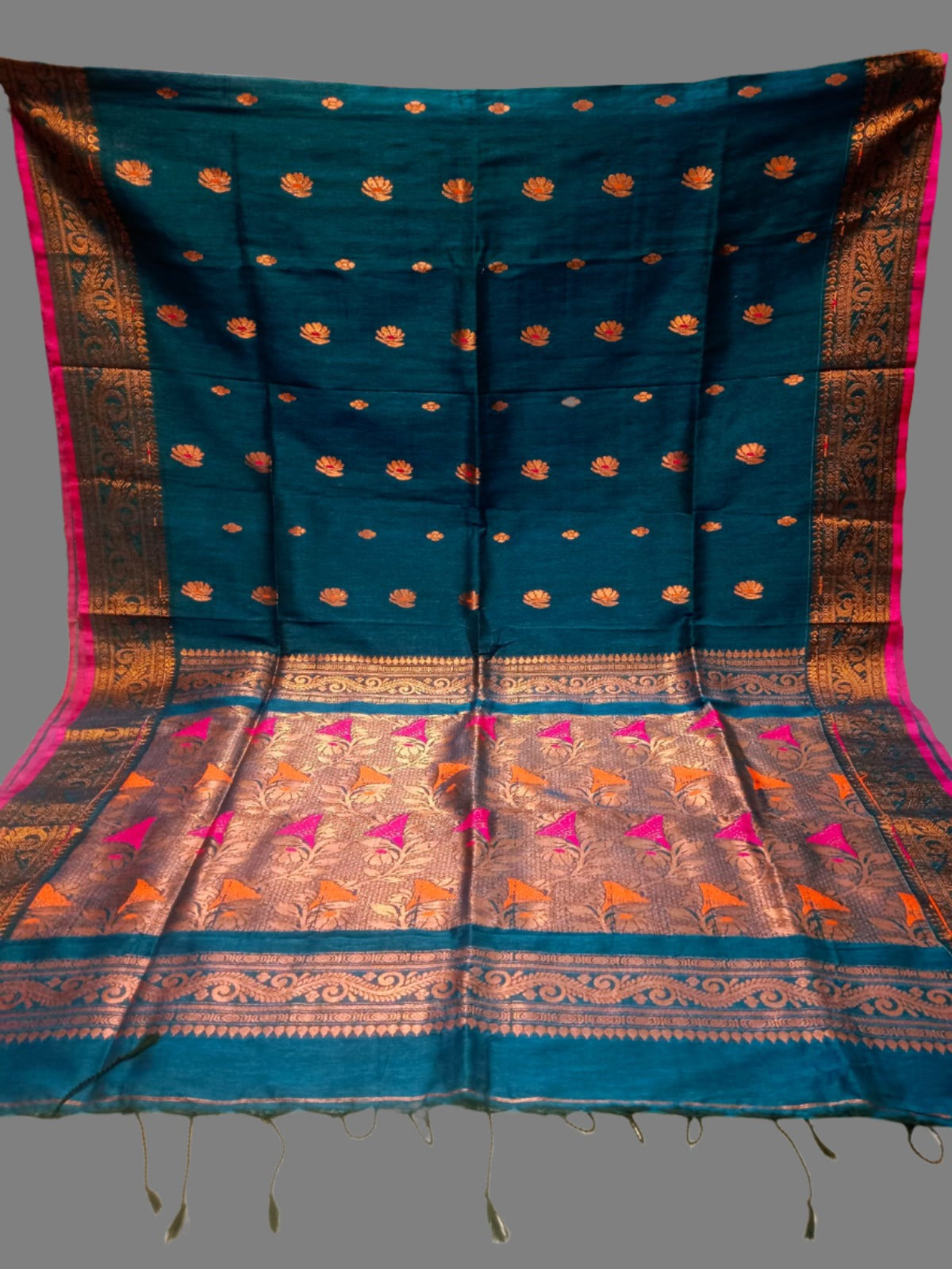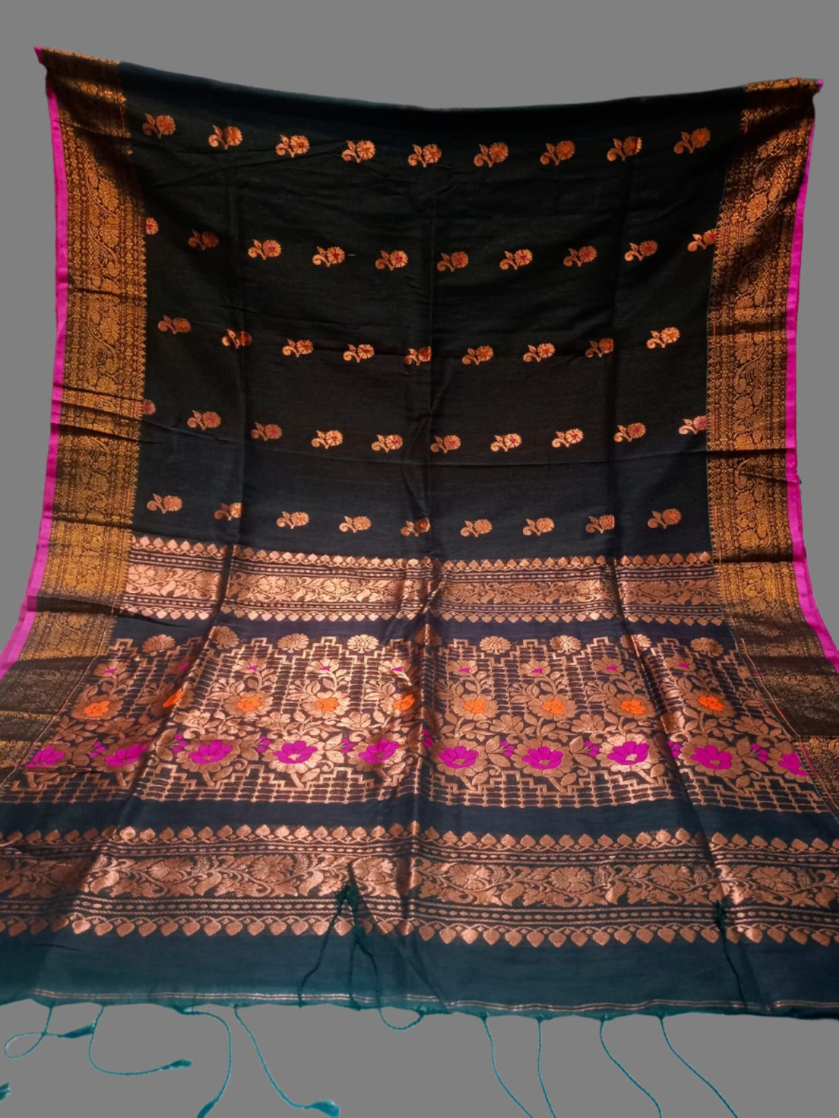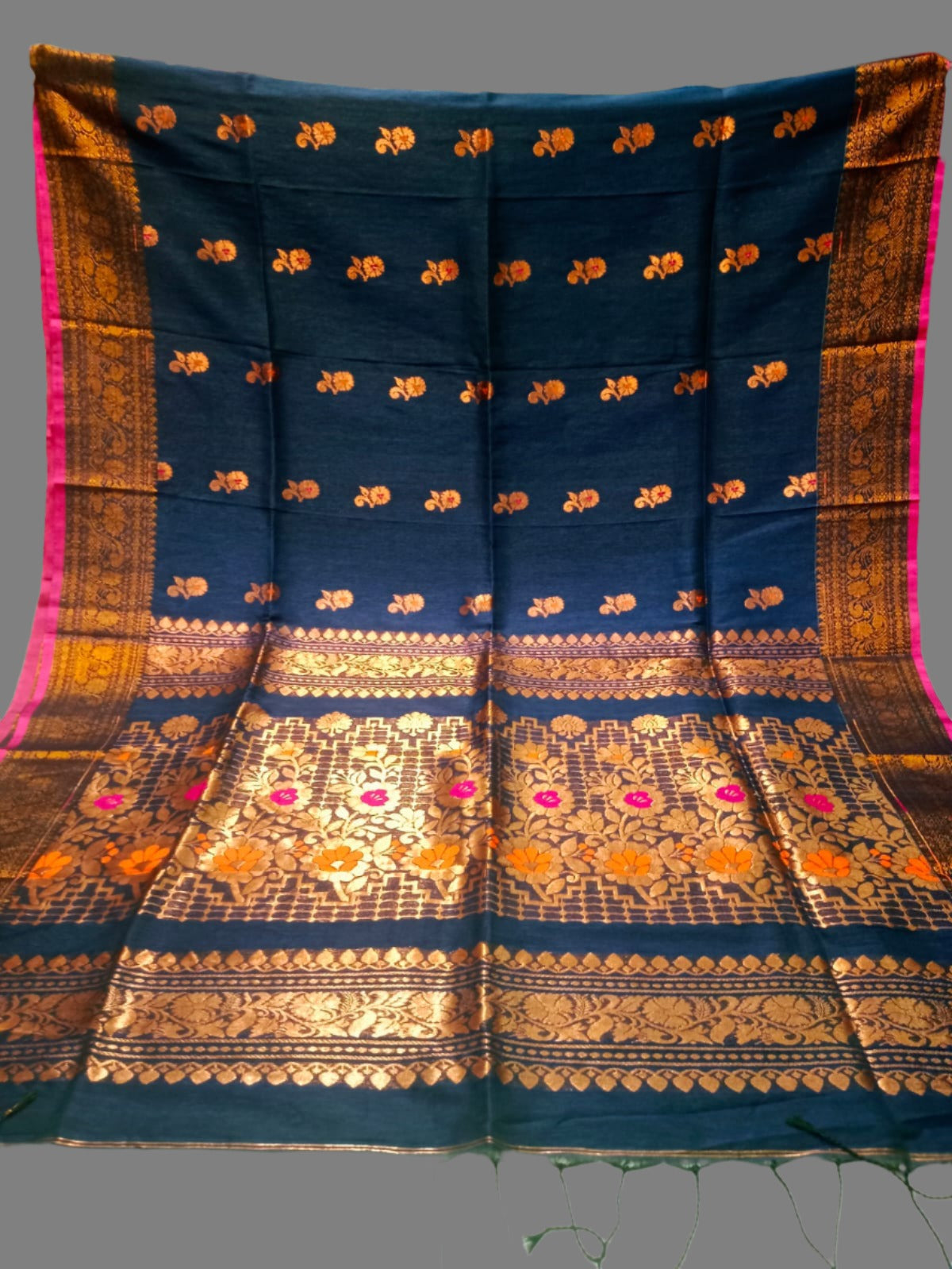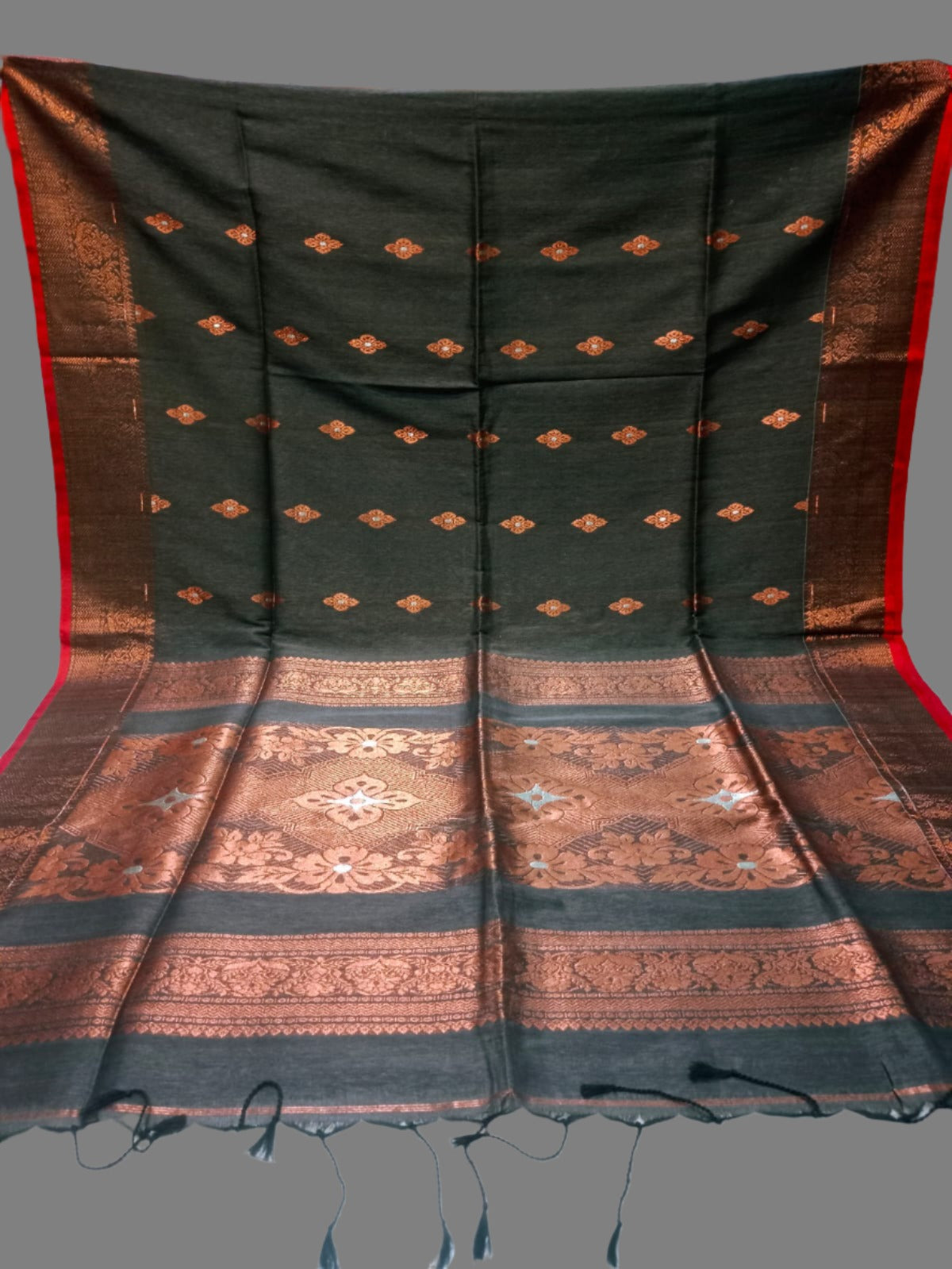 This organic Linen saree is a must-have for eco-conscious fashion lovers. Made from high-quality, organic materials, it not only looks great, but also benefits the environment and local communities. Elevate your wardrobe with this sustainable and stylish choice.