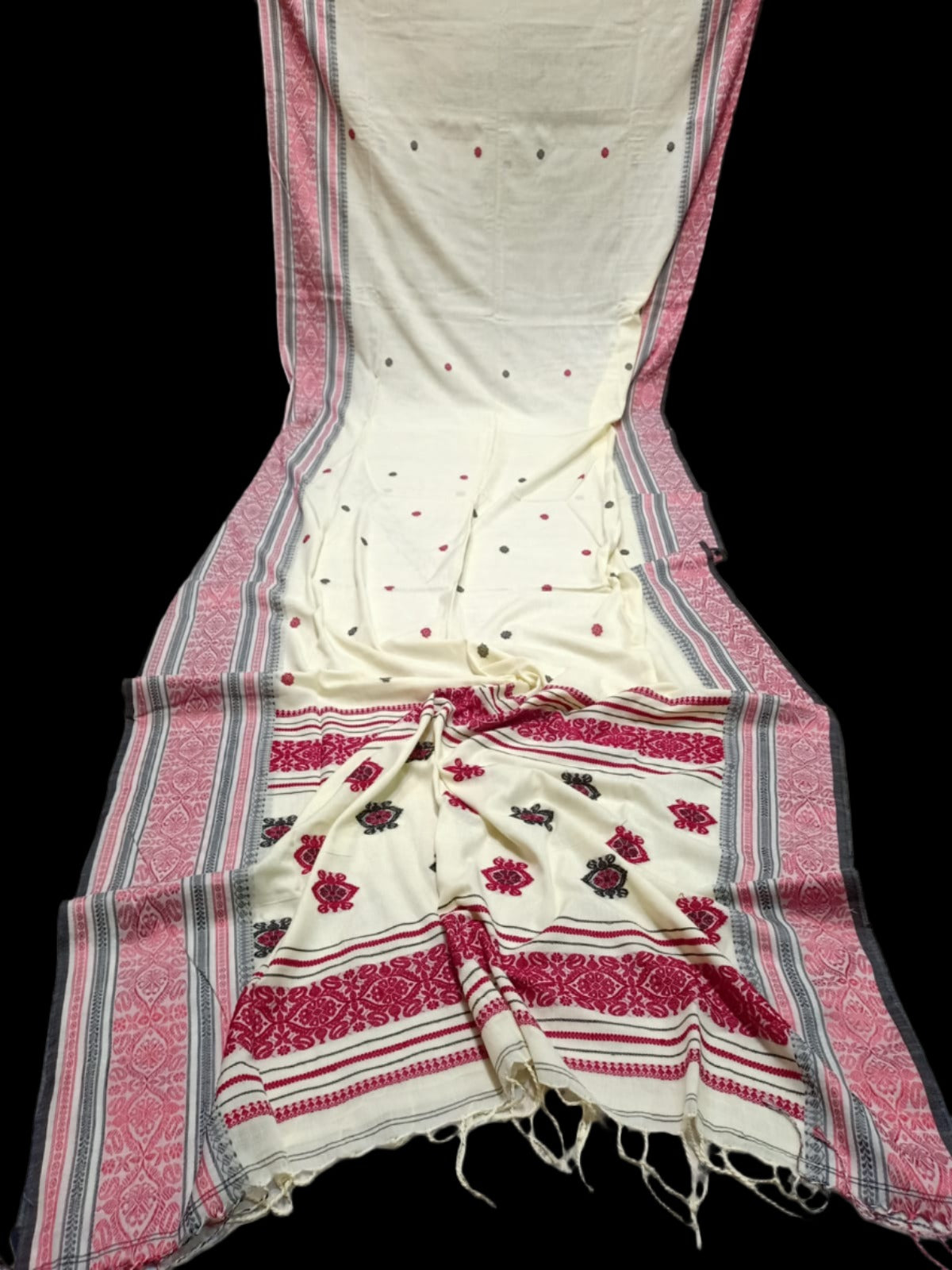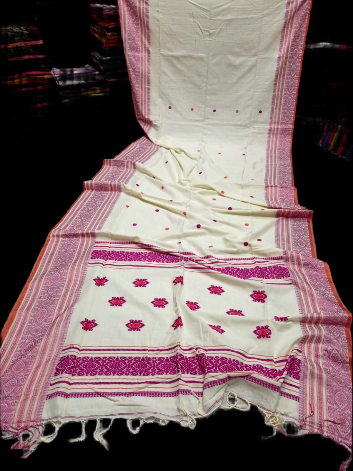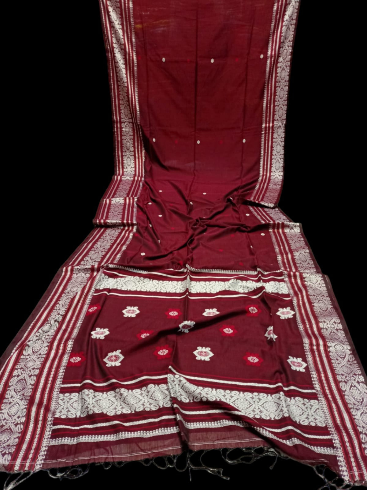 This Pure Khadi Hand Work Saree is expertly crafted for a luxurious and elegant look. Made from high-quality pure khadi fabric, it features stunning hand work that adds a touch of traditional charm. Elevate your style with this timeless saree and experience the comfort and sophistication it offers.