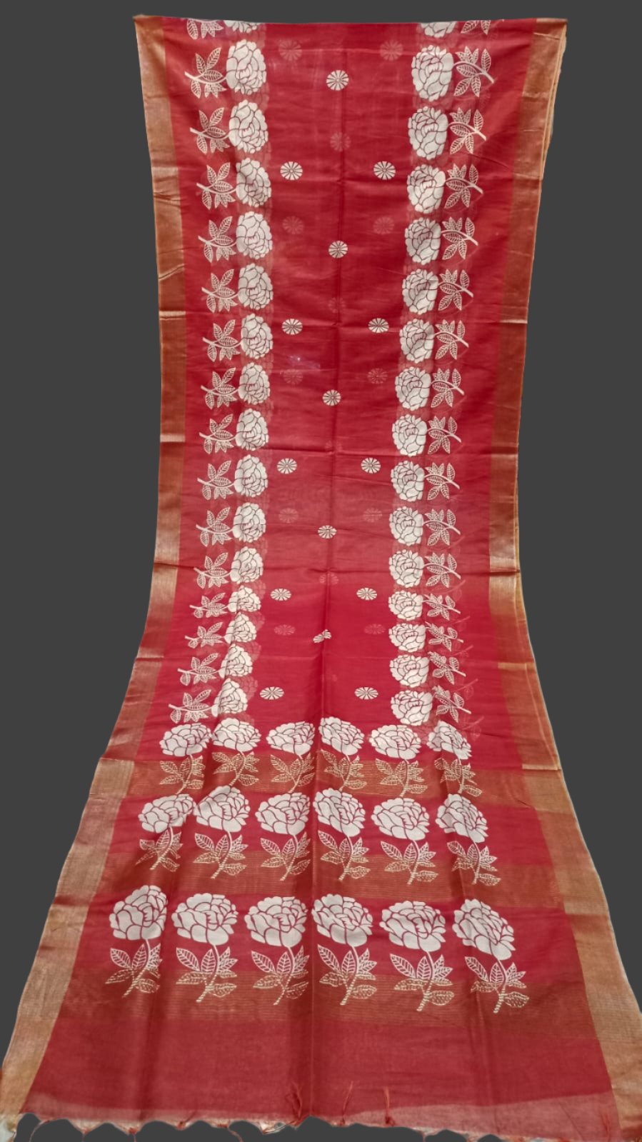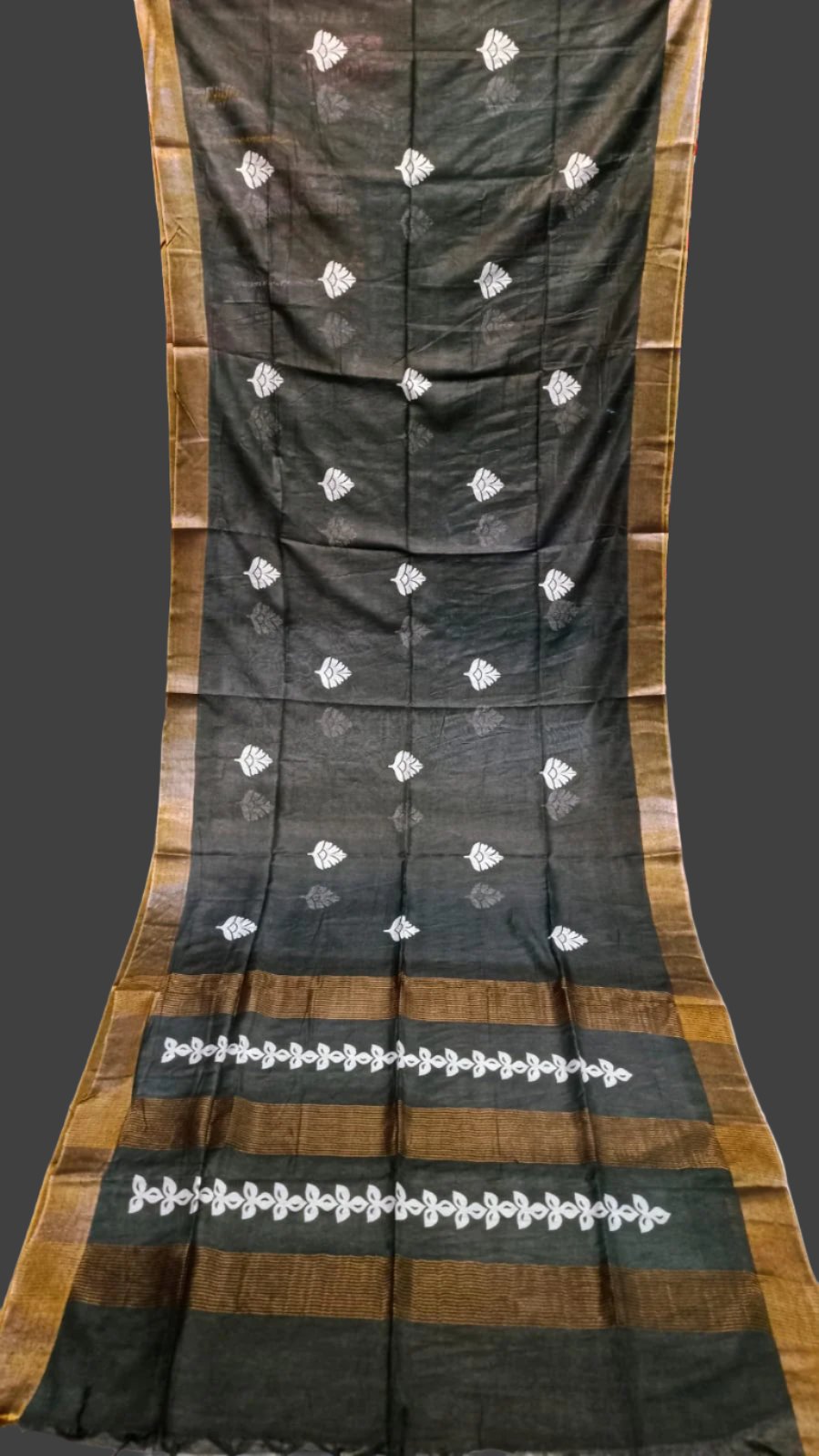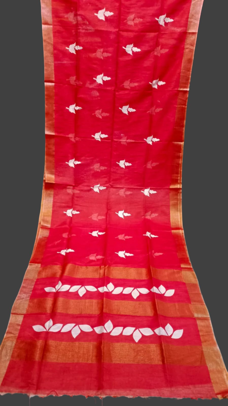 Expertly crafted with Semi Ghicha and Bapta Tussar fabrics, our saree offers a luxurious drape and a unique texture. Perfect for special occasions, it provides the ideal blend of elegance and comfort. Elevate your style with this sophisticated and timeless piece.