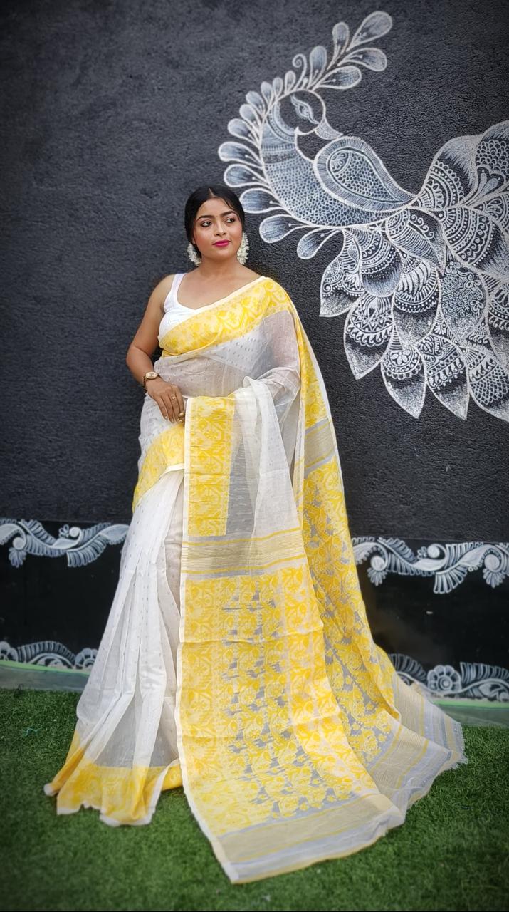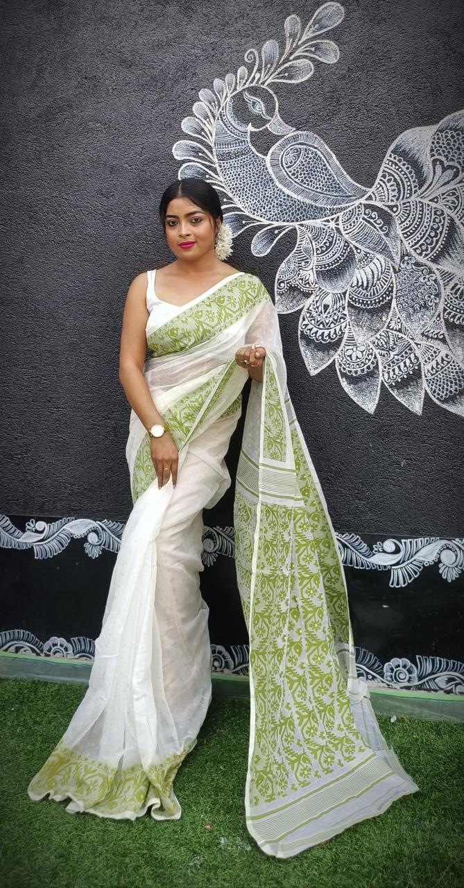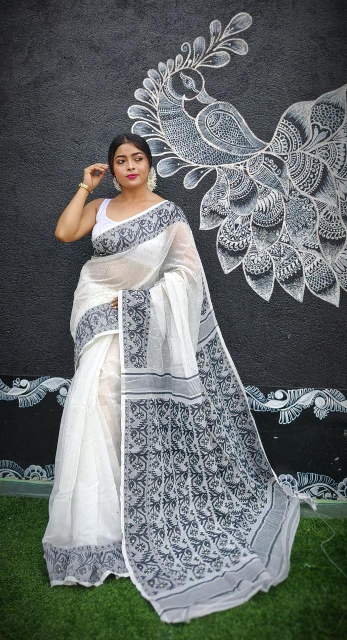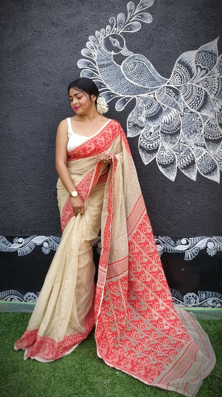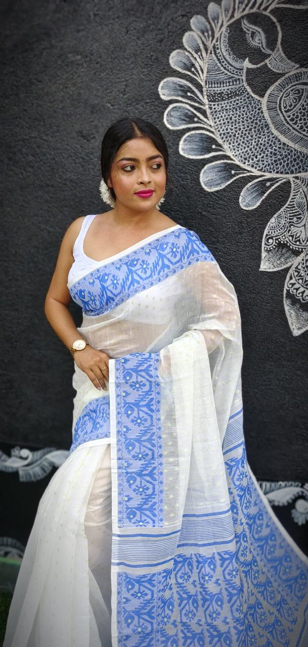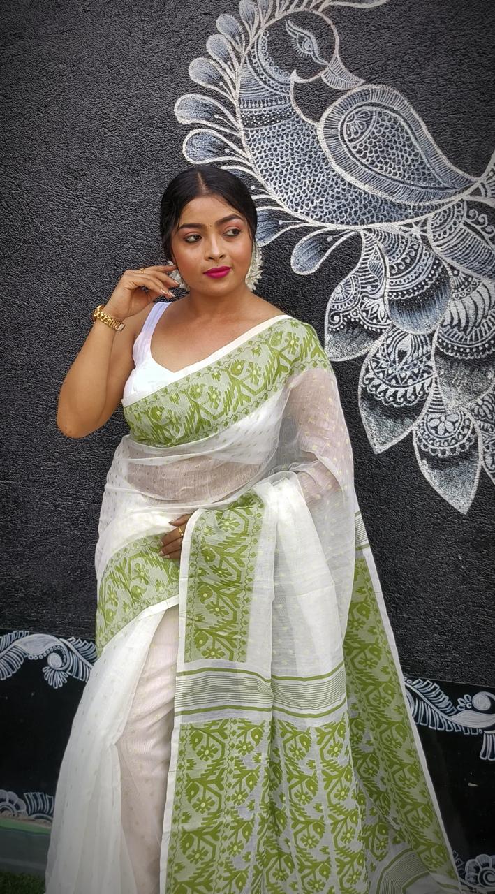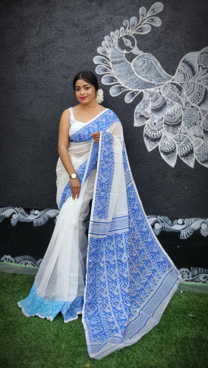 Crafted with precision and expertise, our Soft Jamdani saree is a luxurious blend of comfort and elegance. Made from the finest materials, it drapes beautifully and feels soft against the skin. Elevate your saree collection with this must-have piece that exudes sophistication and style.