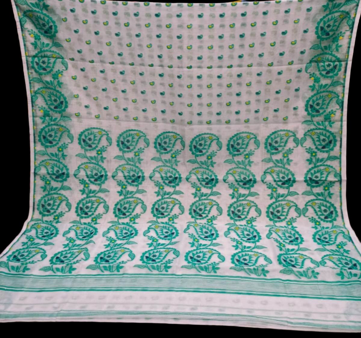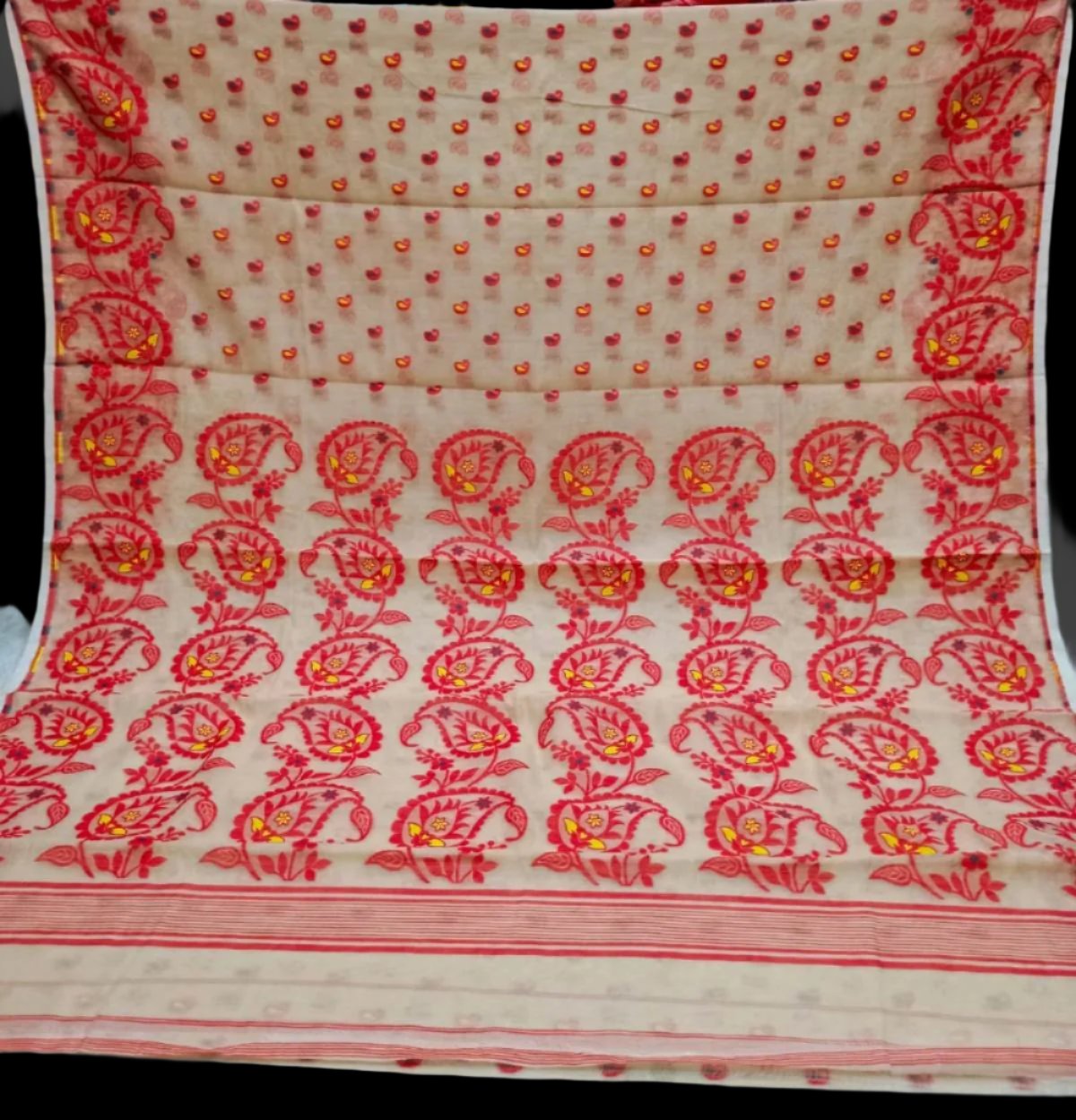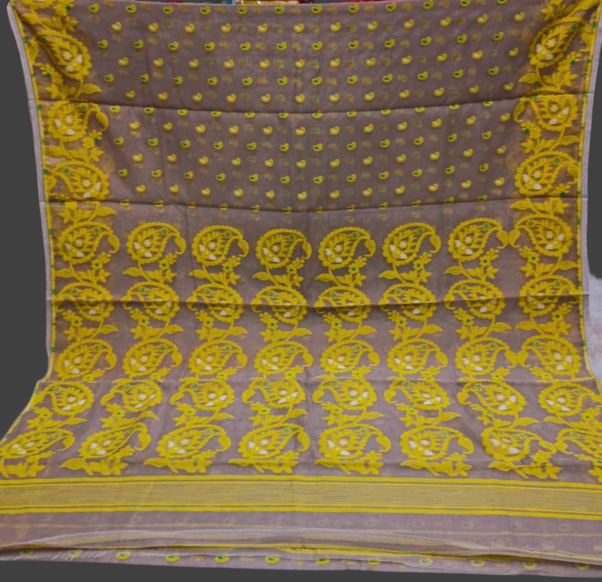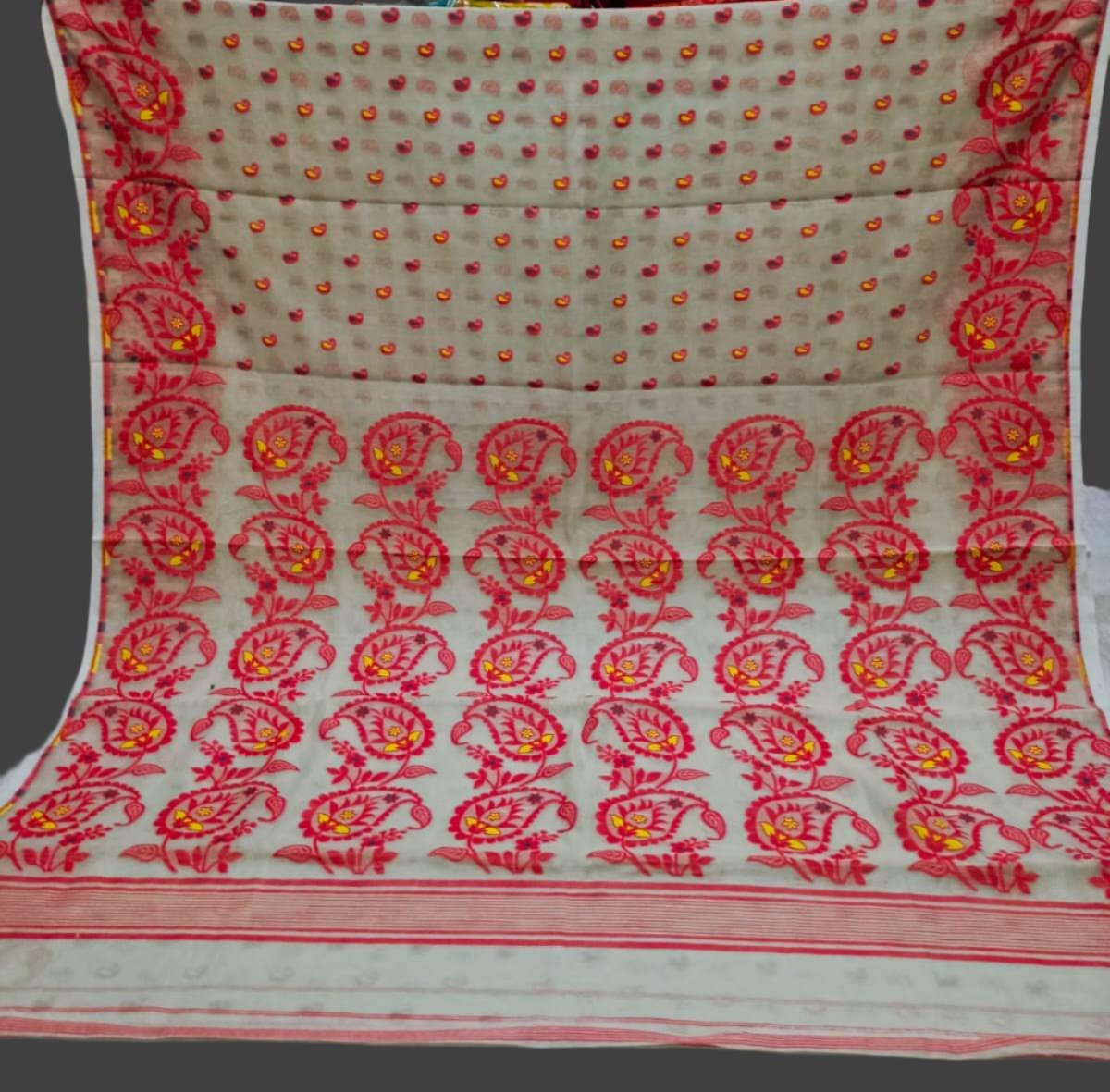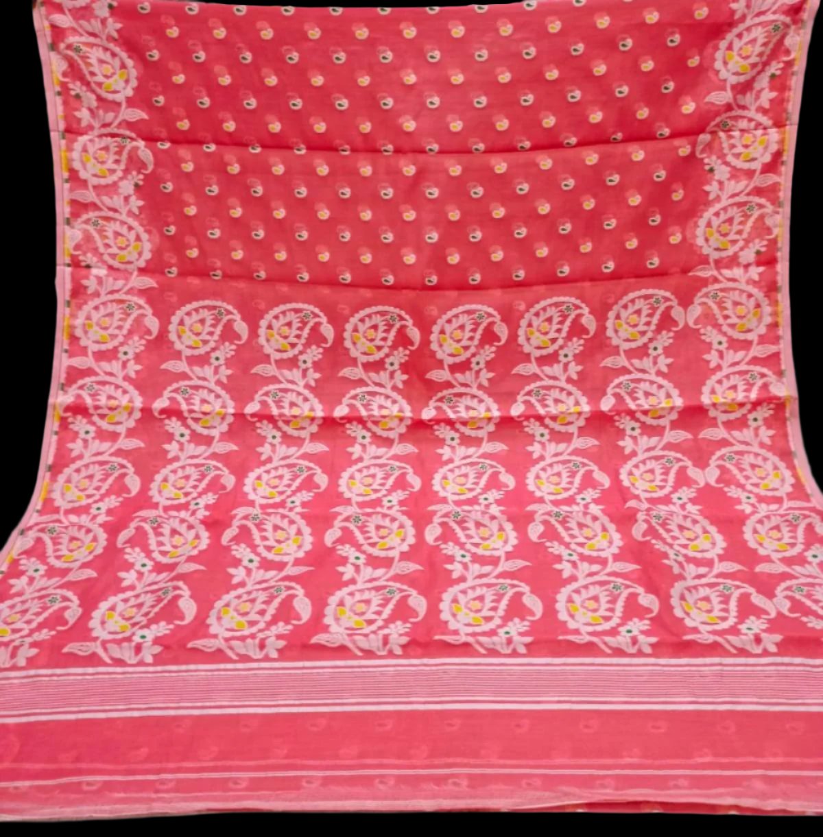 Discover the luxurious softness of our Soft Jamdani saree. Made with the finest Jamdani technique, this saree offers a unique blend of comfort and elegance. Its delicate and lightweight fabric allows for effortless draping and a graceful look. Elevate your wardrobe with this must-have saree.