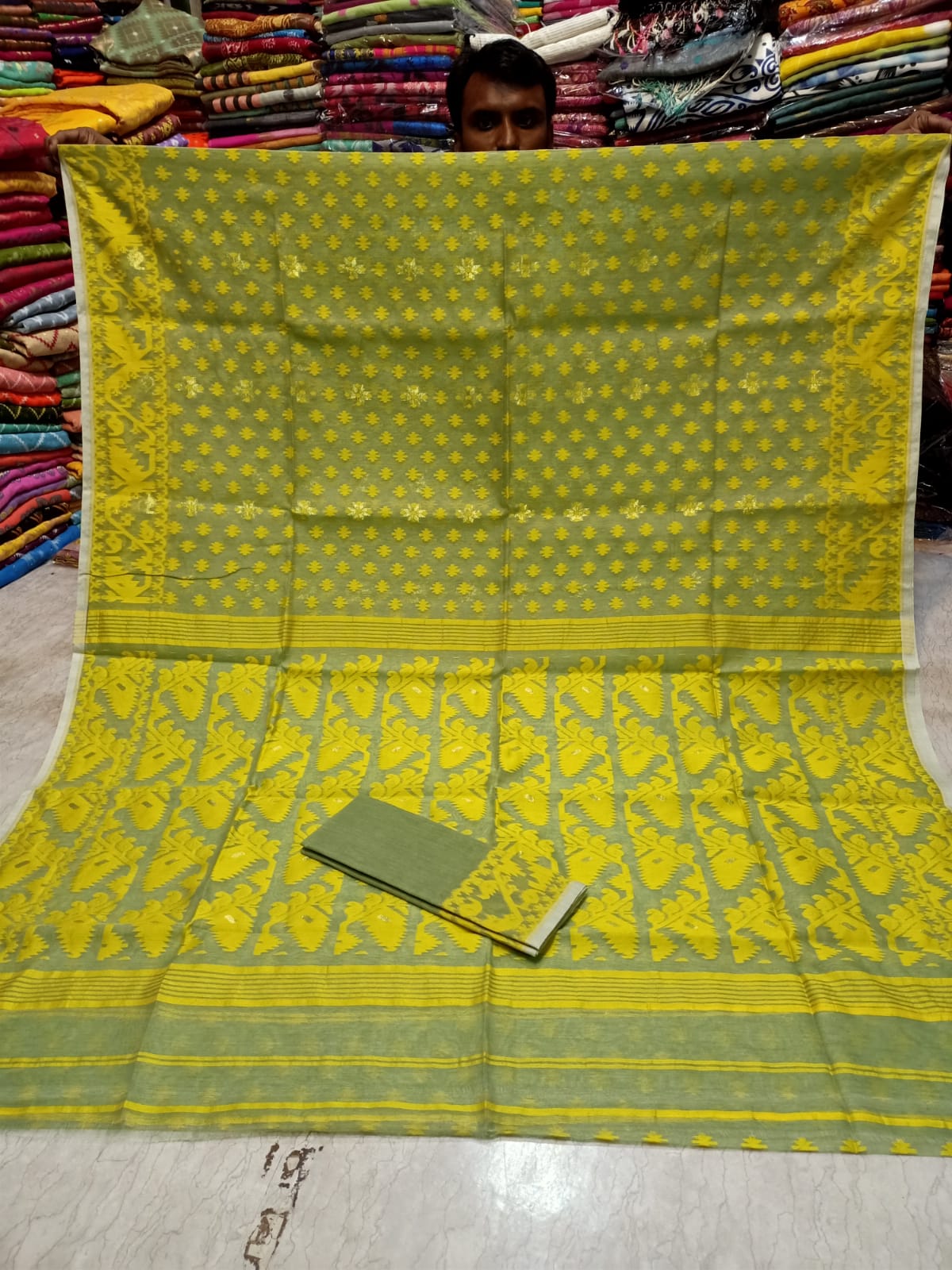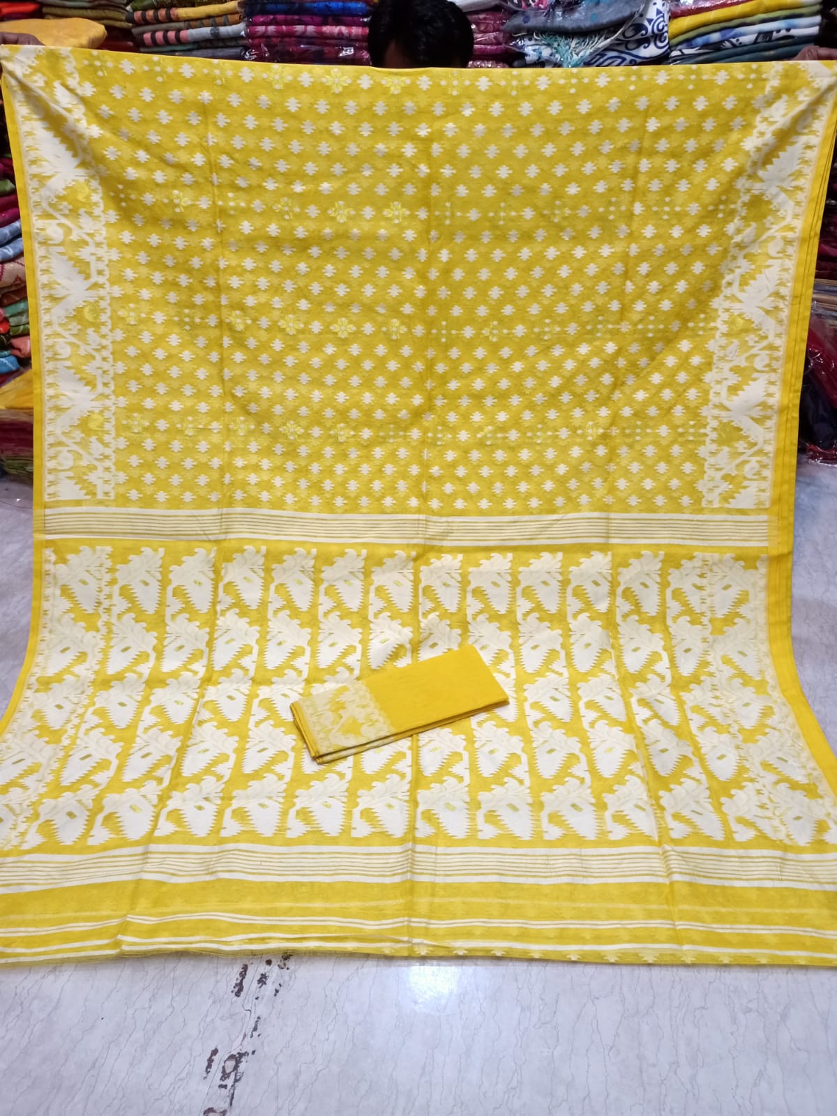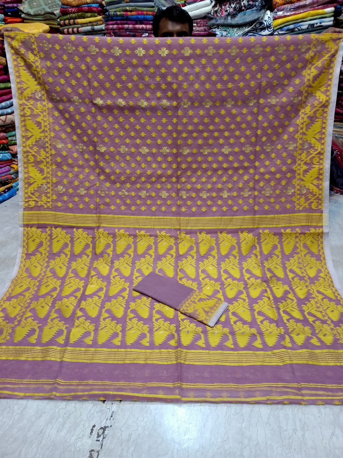 Discover the exquisite elegance of the Soft Jamdani sari. Handcrafted with precision, this sari is made of soft Jamdani fabric, known for its luxurious feel and intricate designs. Perfect for any occasion, elevate your style with this ethereal sari.