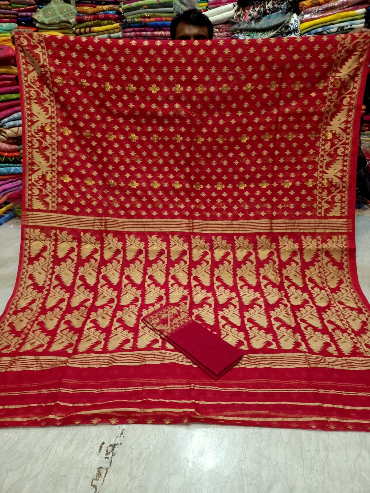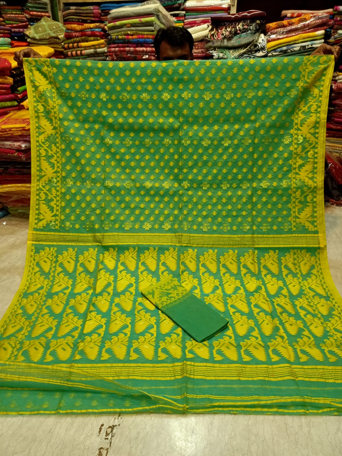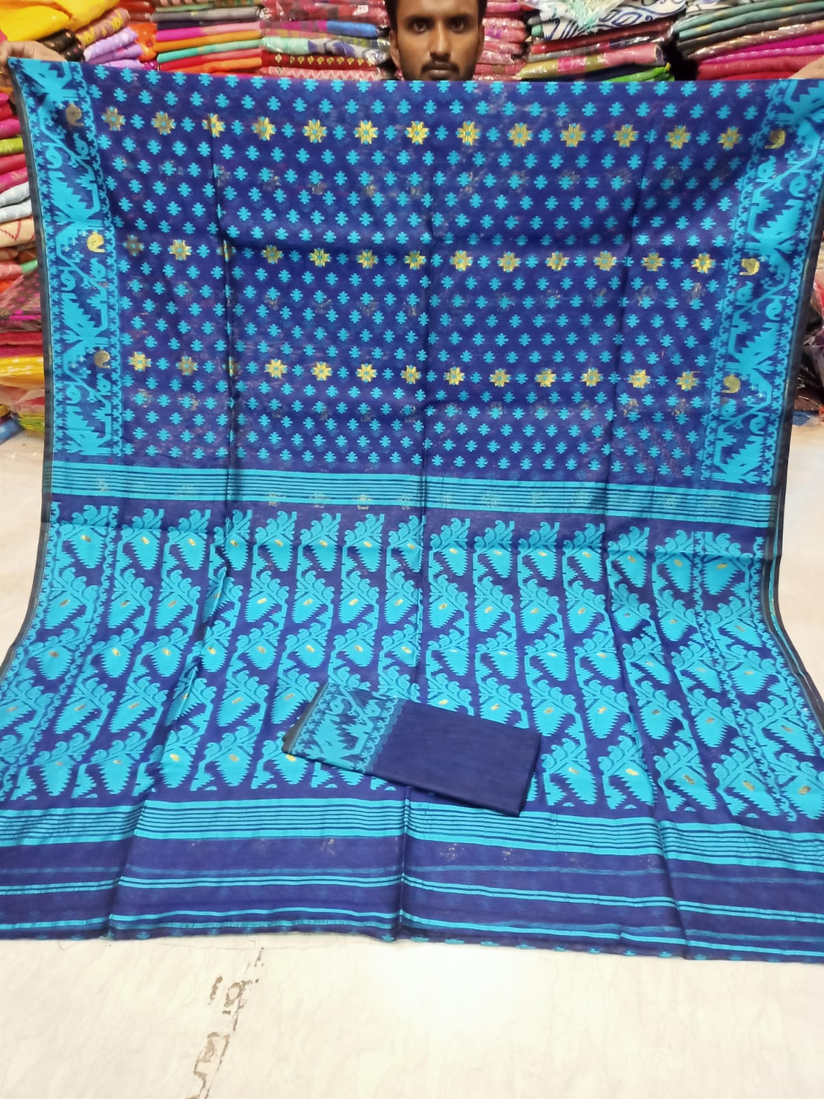 Discover the exquisite elegance of the Soft Jamdani sari. Handcrafted with precision, this sari is made of soft Jamdani fabric, known for its luxurious feel and intricate designs. Perfect for any occasion, elevate your style with this ethereal sari.