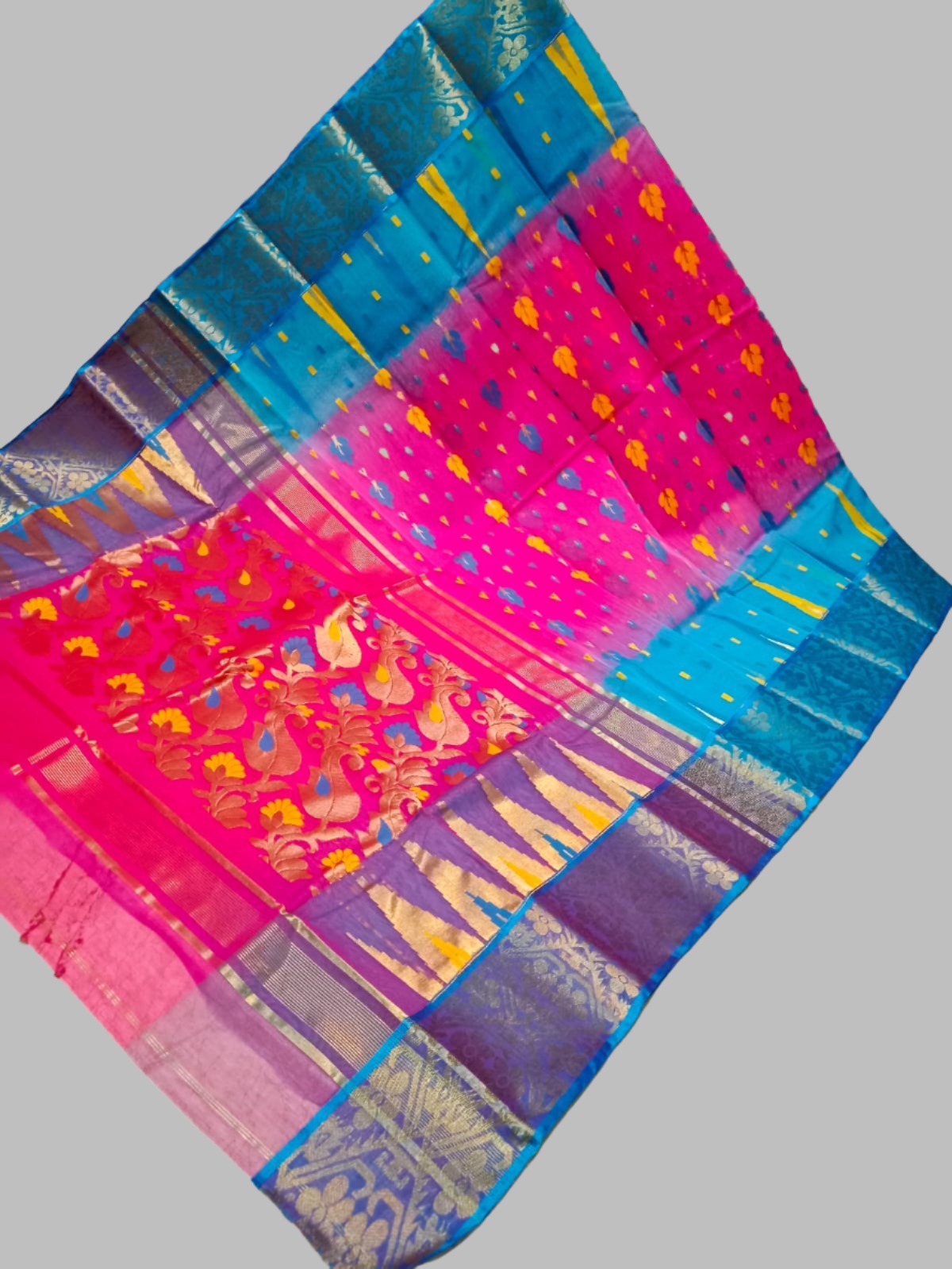 Experience the exquisite craftsmanship of our Tussar Jamdani saree. Made from the finest tussar silk, this saree is handwoven with intricate jamdani designs, resulting in a unique and luxurious piece. Elevate your style with this delicate and elegant saree.